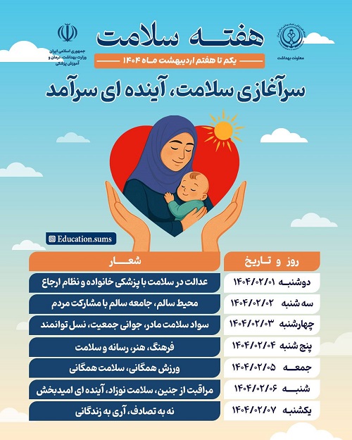 در سال جاری، هفته سلامت با شعار «سرآغازی سلامت، آیندهای سرآمد» برگزار میشود که این شعار برگرفته از پیام اصلی سازمان جهانی بهداشت (WHO) برای روز جهانی سلامت، ۷ آوریل ۲۰۲۵ مصادف با 18 فروردین ۱۴۰۴، و محور اصلی آن، سلامت مادران و نوزادان است.